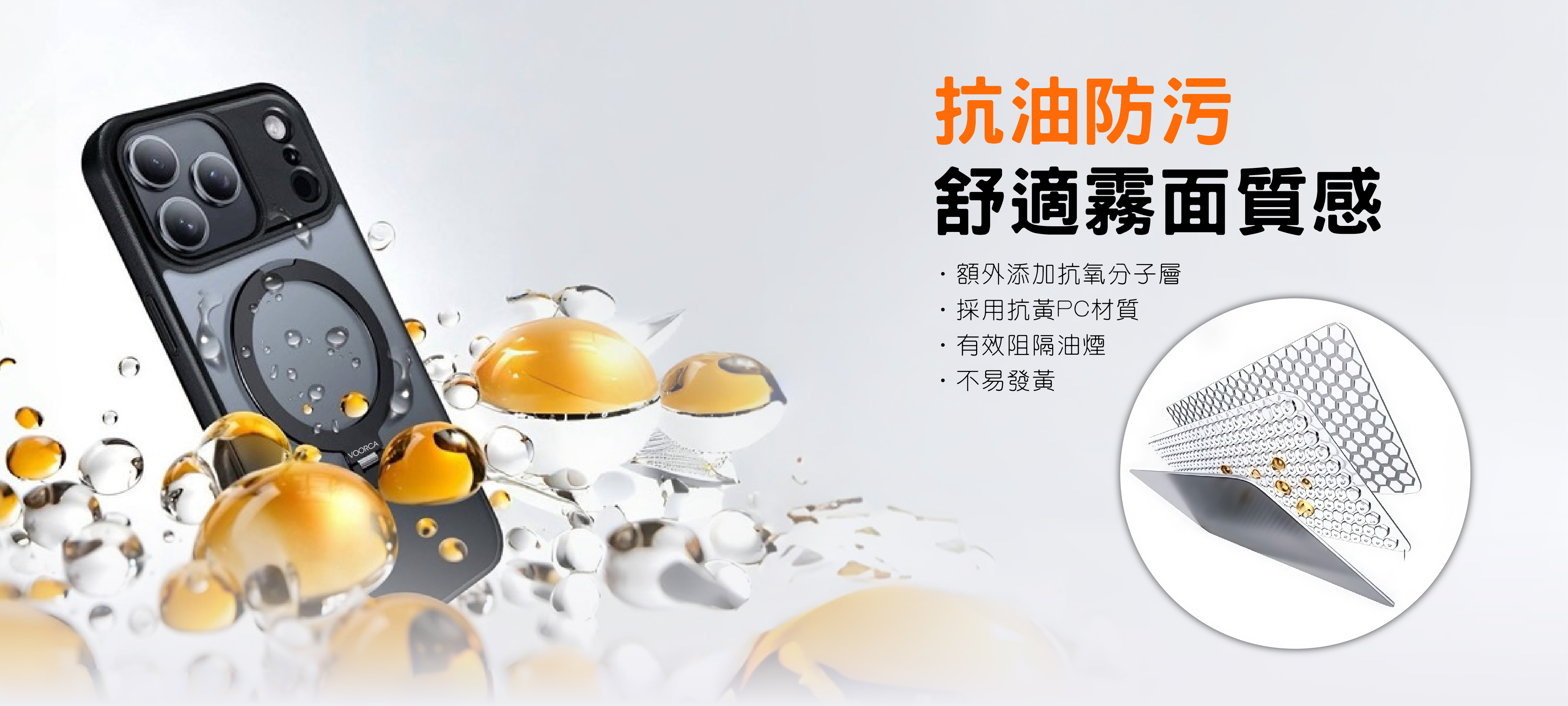 ✔️PU+PC 複合材質,磨砂膚感抗指紋